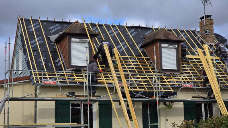 Après un diagnostic approfondi de l'état de la toiture existante, nous avons procédé à la dépose des anciennes tuiles pour installer une nouvelle couverture en tuiles TBF brun rustique.